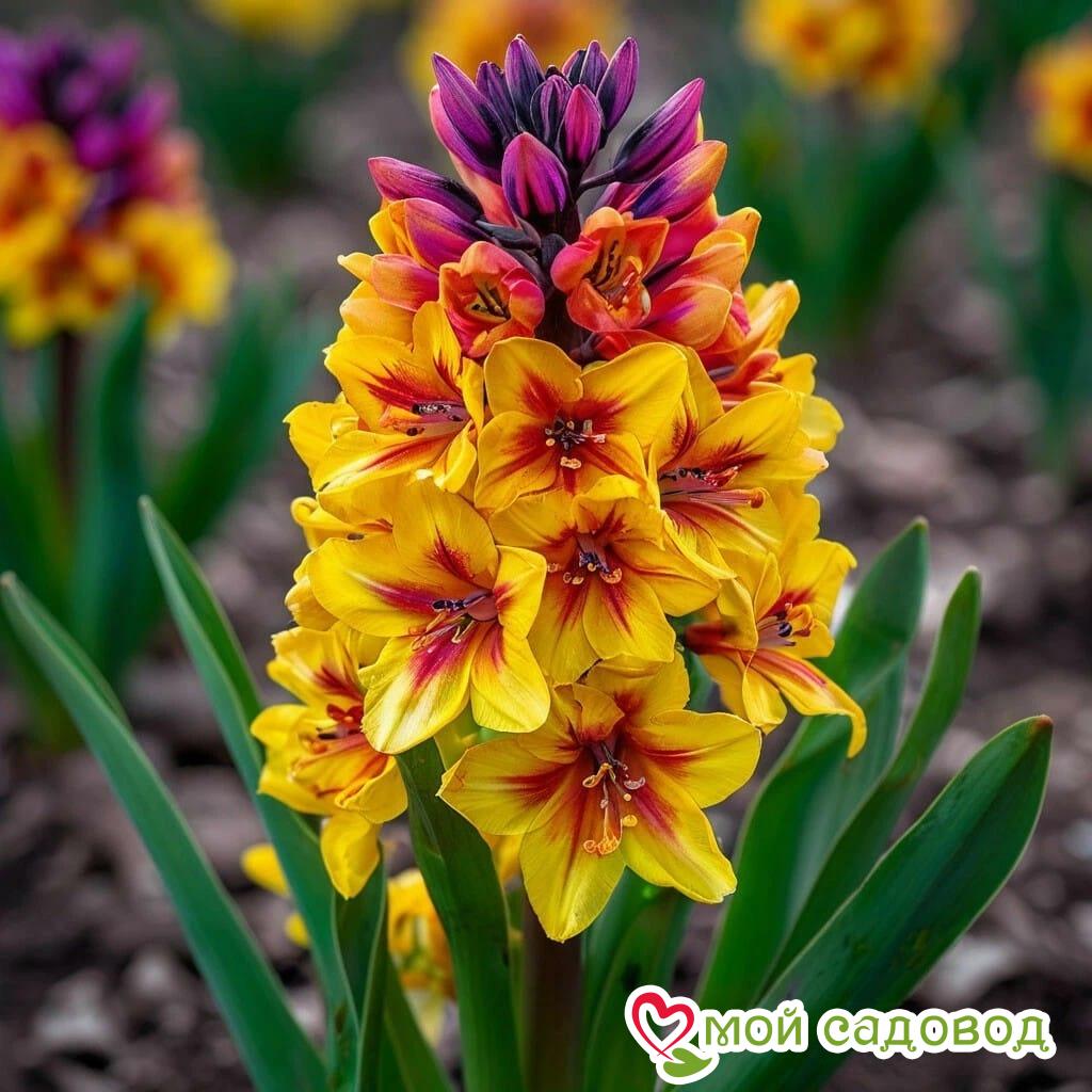 Добро пожаловать в интернет-магазин “Мой Садовод”! Мы рады представить вам один из самых загадочных и завораживающих сортов гиацинтов — “Миднайт Мистери” (Midnight Mystery). Этот гиацинт, словно тайна ночного неба, сочетает в себе тёплые жёлтые тона у основания бутона, плавно переходящие в насыщенные малиновые оттенки на вершине, создавая эффект волшебного градиента. «Мой Садовод» — ваш проводник в мир прекрасных растений, предлагающий только лучшие саженцы, чтобы создать в вашем саду атмосферу очарования и волшебства!